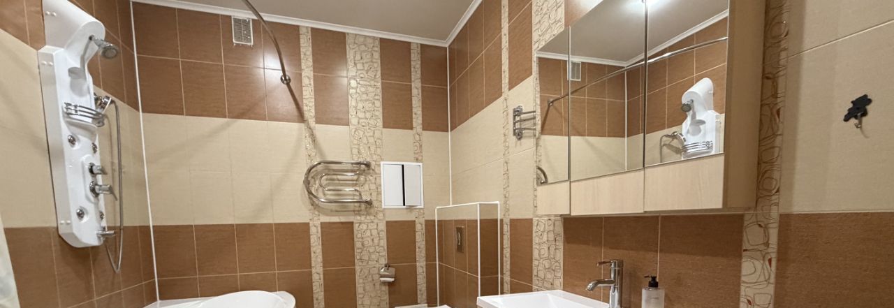 Сдаётся видовая двухкомнатная квартира в ЖК "Берег" по ул. Меридианная, 4. Площадь 115 м², 7 этаж, 2 санузла, гардеробная, панорамный вид.