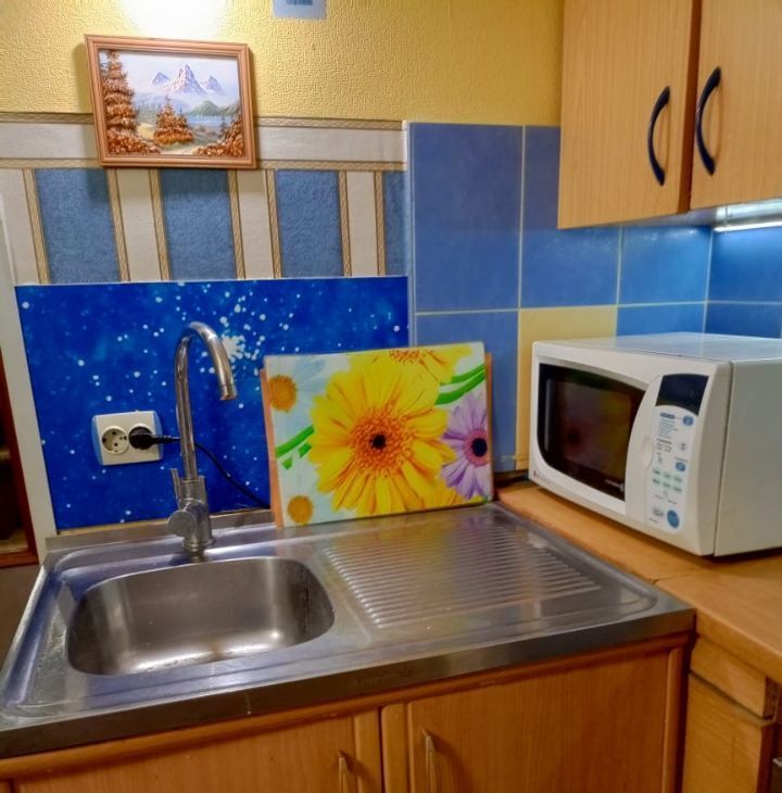 В квартире сделан косметический ремонт, она полностью меблирована. На кухне и в комнате есть вся необходимая мебель, что делает её готовой к проживанию. Из бытовой техники есть холодильник, телевизор и стиральная машина. Ванная комната оборудована душевой кабиной и совмещена с санузлом. Окна квартиры выходят во двор, поэтому в помещении тихо и спокойно.