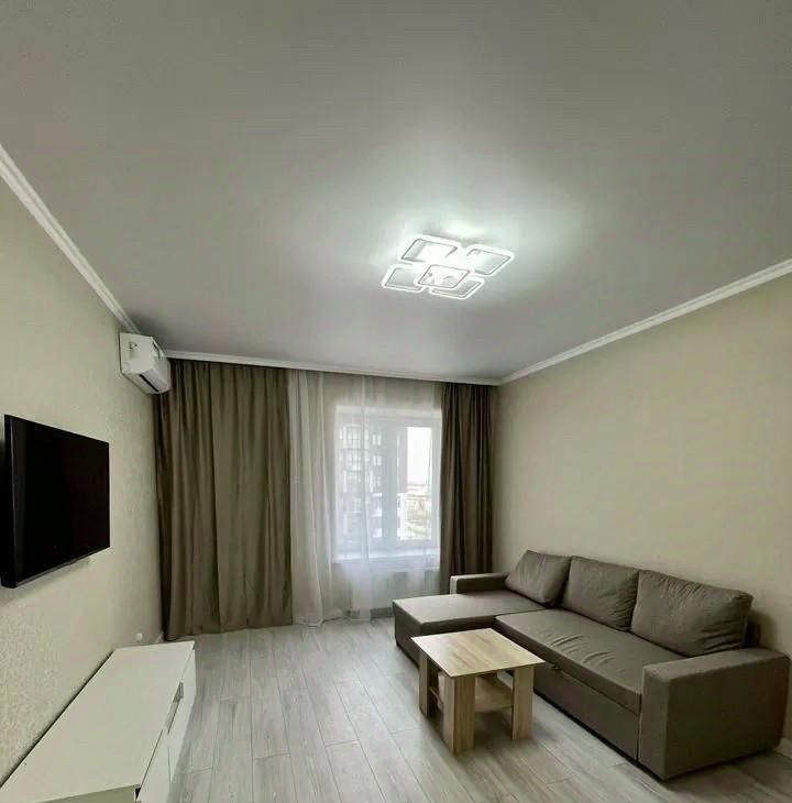 В квартире есть всё необходимое для комфортного проживания. Современный евроремонт с тщательно подобранной мебелью в комнатах и на кухне. Из техники вас порадуют кондиционер, холодильник, телевизор и стиральная машина. Ванная комната оборудована ванной, что станет отличным местом для отдыха после рабочего дня.