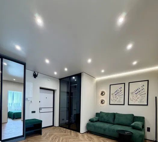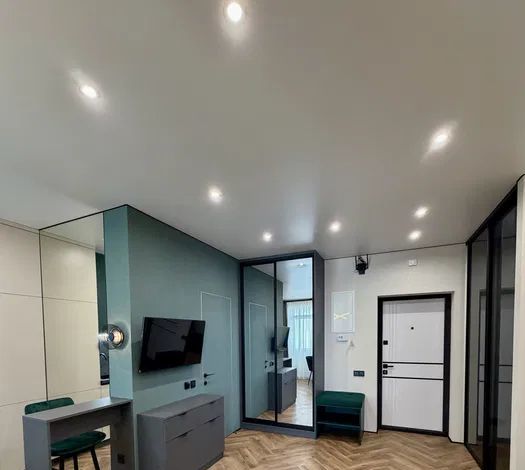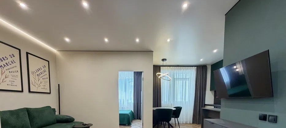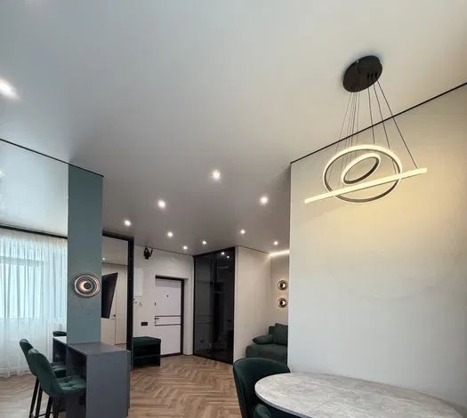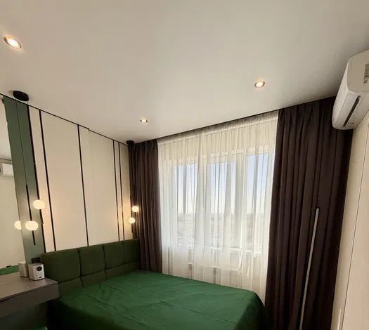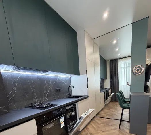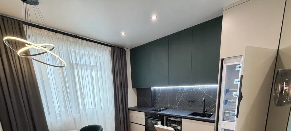 Предлагается в аренду уютная двухкомнатная квартира с дизайнерским ремонтом в современном жилом комплексе, построенном в 2021 году. Общая площадь квартиры составляет 45 кв. м, из которых 33 кв. м занимает просторная кухня. Квартира находится на 20-м этаже 20-этажного дома, с высотой потолков 2.59 метра. Окна выходят на улицу, открывая вид на город.
