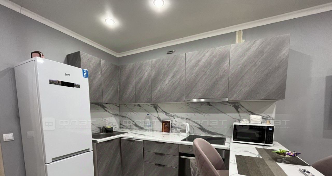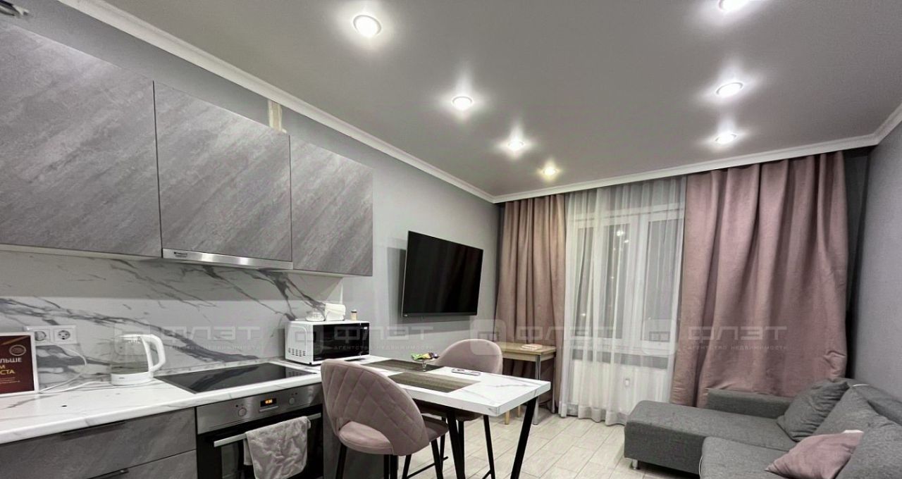 Жильцам предоставляется из мебели: кухонный гарнитур, кровать, диван раскладной, шкаф-купе, барная стойка, стулья. Из техники: холодильник, варочная панель, духовка, чайник, микроволновая печь, посудомоечная машина, стиральная машина, телевизор.