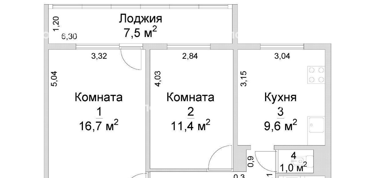 Площадь комнат: 16,7 кв.м, 11,4 кв.м.
