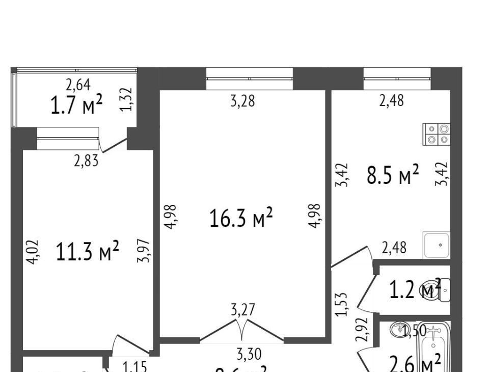 2-к кв. Татарстан, Казань ул. 2-я Юго-Западная, 34 (54.0 м²)