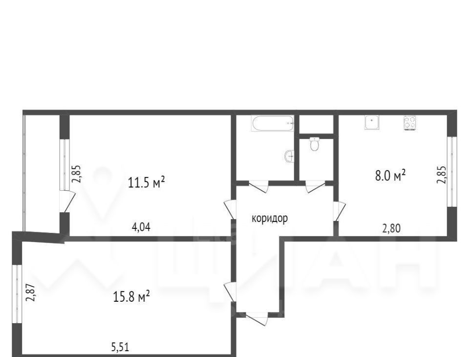 2-к кв. Татарстан, Казань ул. Адоратского, 33 (47.8 м²)