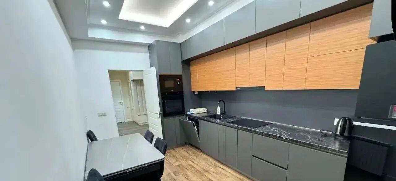 В квартире сделан современный евроремонт. Вся необходимая мебель уже есть: уютная обстановка на кухне и в комнатах позволит вам сразу почувствовать себя как дома. Из техники в вашем распоряжении кондиционер, холодильник, посудомоечная и стиральная машины, а также телевизор — всё необходимое для комфортной жизни. Санузел совмещённый, оборудован душевой кабиной. В квартире есть балкон и подключен интернет, что делает её ещё более удобной и современной.
