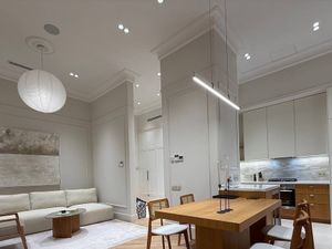 В квартире есть всё необходимое для комфортного проживания. Просторная кухня с мебелью и техникой: холодильник, посудомоечная и стиральная машины, современная плита, духовка, вытяжки (в ванной автоматизированная), настраиваемый теплый пол, система сигнализации протечки воды, боллер, несколько-уровневая подсветка. В гостиной и спальне также имеется вся необходимая мебель. Для вашего удобства установлены кондиционер и телевизор. В ванной комнате установлена парящая ванна.