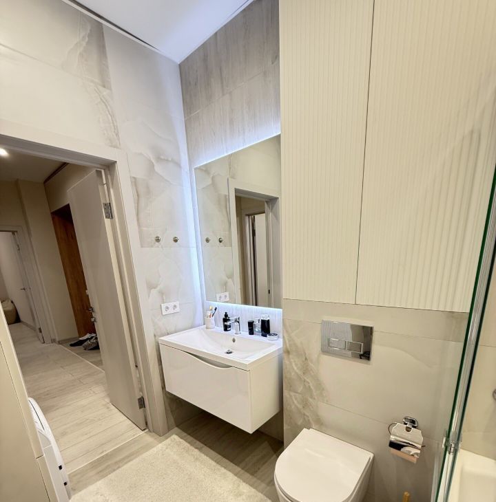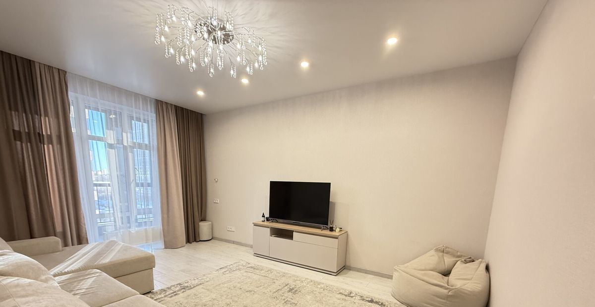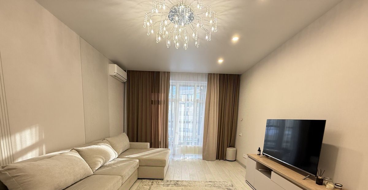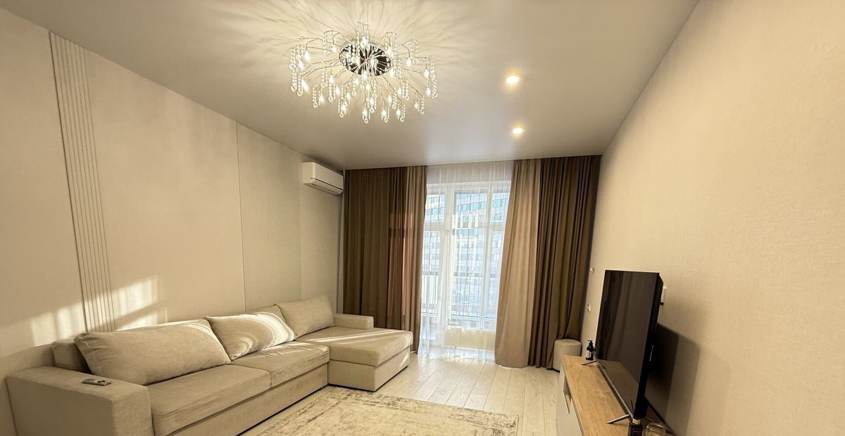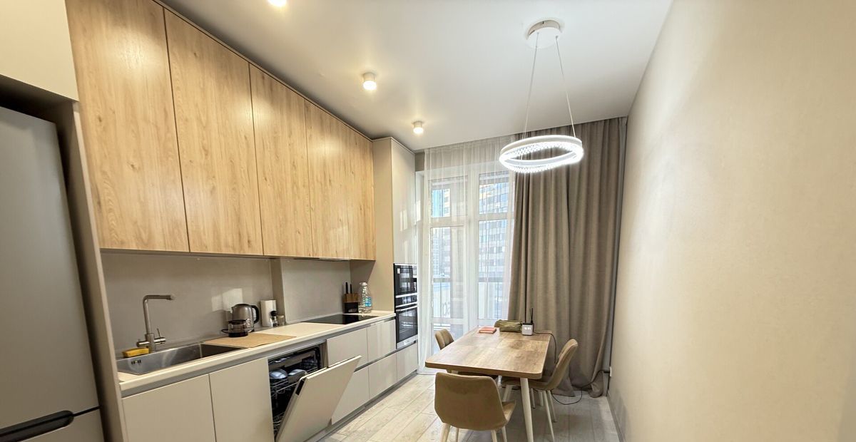 Наполнение: Квартира полностью укомплектована новой техникой (посудомоечная машина, кондиционеры, встроенный духовой шкаф, Смарт-ТВ) и стильной мебелью.