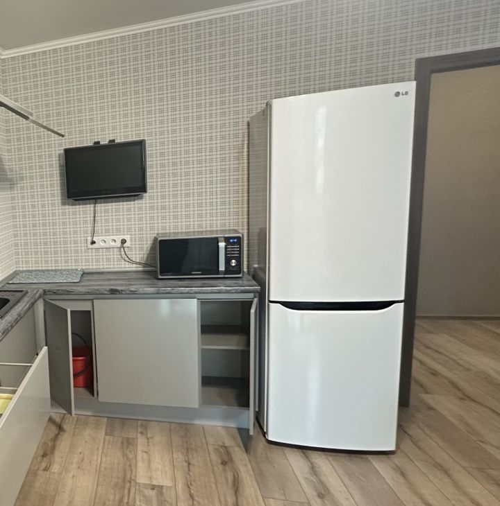Из бытовой техники и электронники: смарт-телевизоры с Яндексом, стиральная машина, СВЧ-печь, чайник, холодильник, в комнатах кондиционеры.