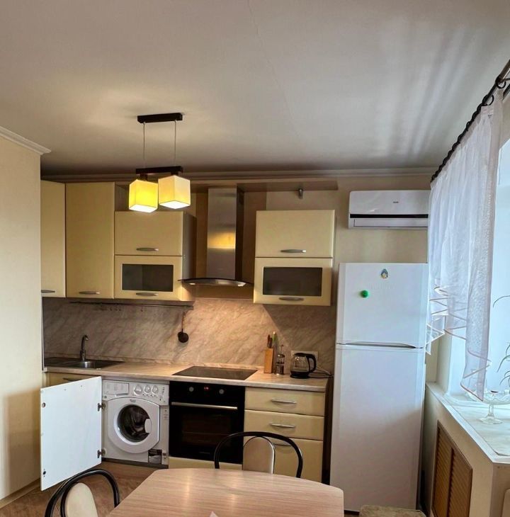 В квартире сделан качественный, добротный ремонт. Кухня совмещена с гостиной. Квартира полностью укомплектована мебелью, бытовой техникой (индукционная панель, духовка, электроводонагреватель, кондиционер, стиральная машина).