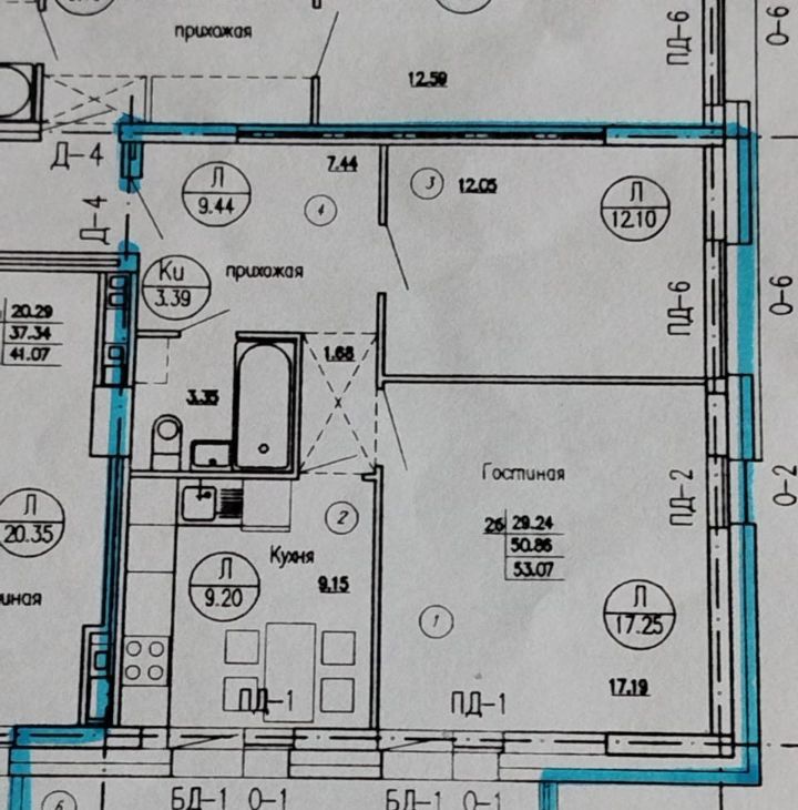 Светлые тона. В зоне кухни и прихожей красивый керамогранит. На кухне фасады