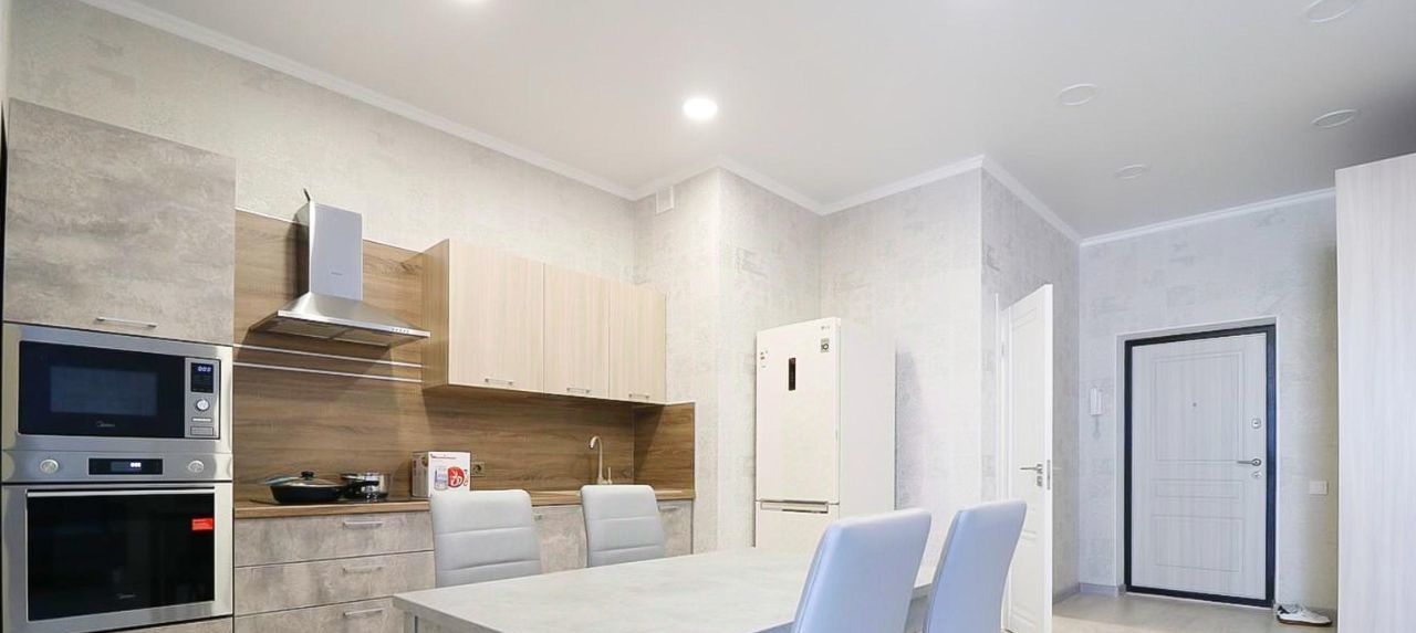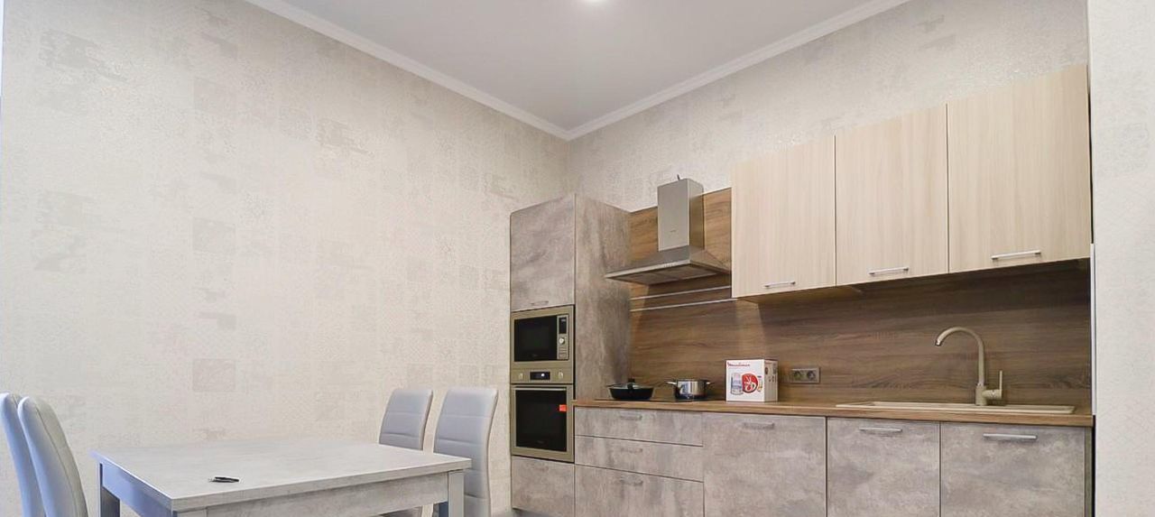 ПРО КВАРТИРУ: Стильный кухонный гарнитур, оснащён варочной панелью, вытяжкой, духовым шкафом, посудомоечной машиной микроволновой печью, чайником холодильником, а также имеется весьма вместительная гардеробная комната;