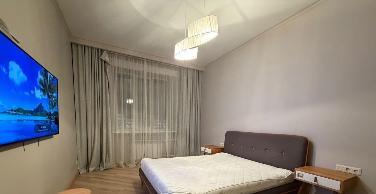 В квартире сделан качественный ремонт. Комнаты светлые и уютные, полностью меблированы и обставлены всей необходимой техникой. Планировка удобная, с раздельными комнатами, что позволяет комфортно разместиться нескольким жильцам. Санузел совмещенный, оборудованный современной сантехникой.