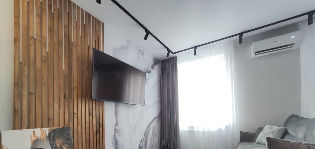 В квартире выполнен качественный ремонт с использованием современных материалов. Приятная обстановка и продуманная планировка делают это пространство комфортным для жизни. В наличии вся необходимая мебель и техника, включая кухонный гарнитур, холодильник, стиральную машину и телевизор. Санузел совмещённый, в современном исполнении.