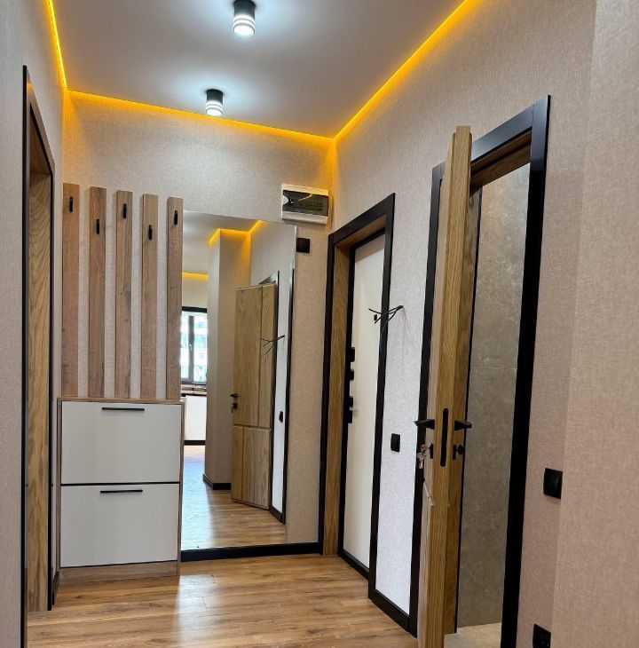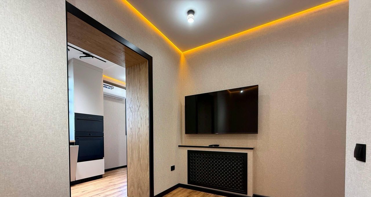 В квартире выполнен дизайнерский ремонт, который подчеркивает её современность и комфорт. Просторная гостиная и уютная спальня обставлены стильной мебелью. Кухня оснащена всей необходимой техникой: есть кондиционер, холодильник, посудомоечная машина, телевизор и стиральная машина. В ванной комнате установлена душевая кабина. Квартира также имеет балкон, где можно наслаждаться свежим воздухом.