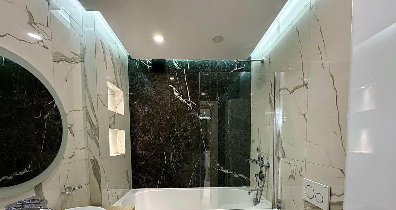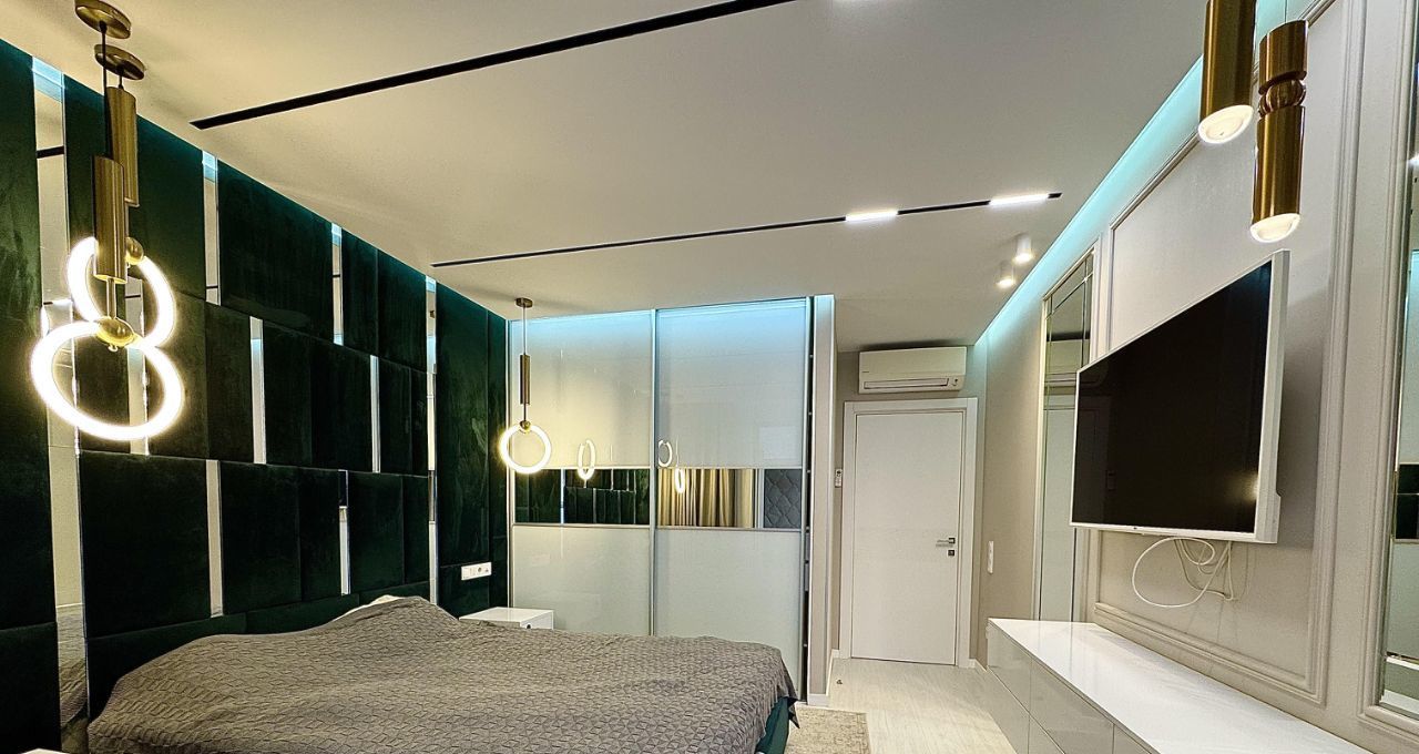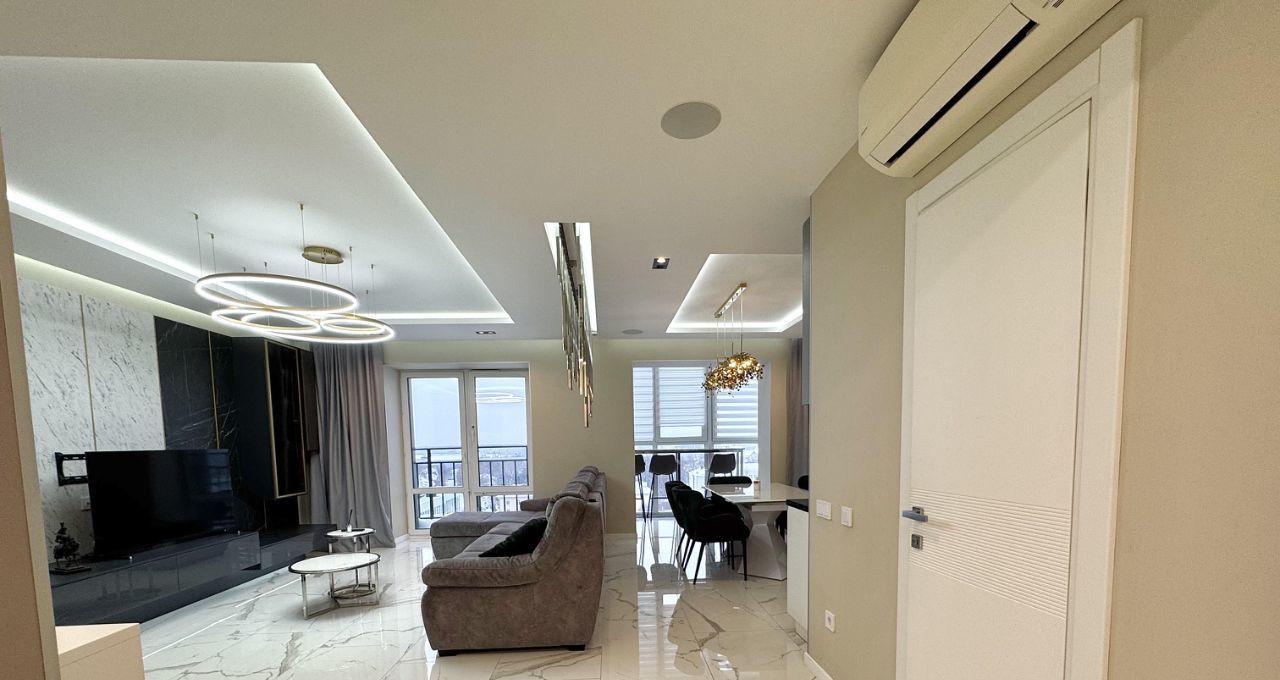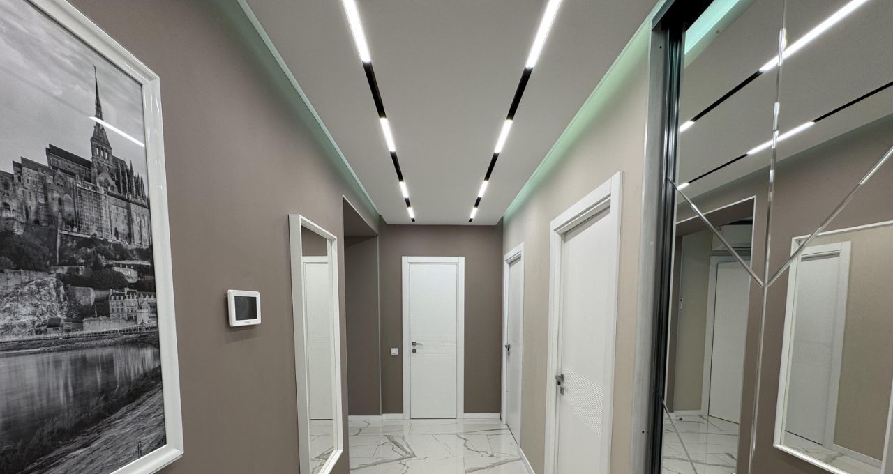 В квартире выполнен современный дизайнерский ремонт с использованием качественных материалов. Установлены два кондиционера, обеспечивающие комфортный микроклимат в любое время года. В прихожей и гостиной — тёплый пол, создающий дополнительное ощущение домашнего тепла.