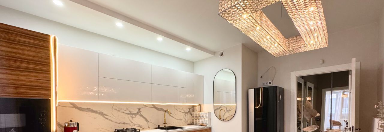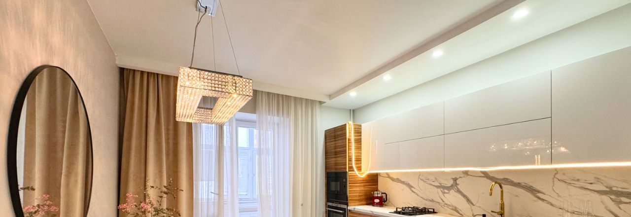 Выполнен современный дизайнерский ремонт .