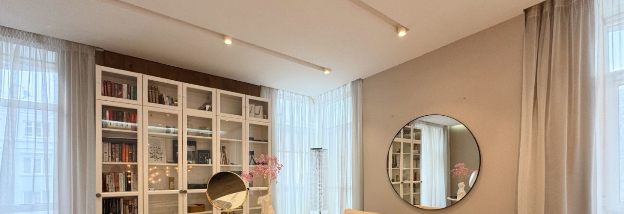 Квартира общей площадью 84 м² с одной спальней и просторным залом