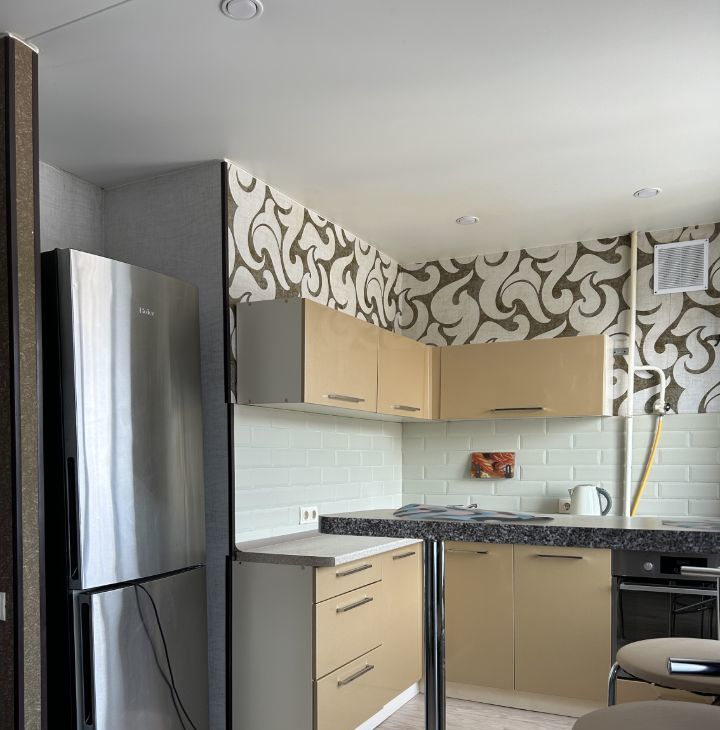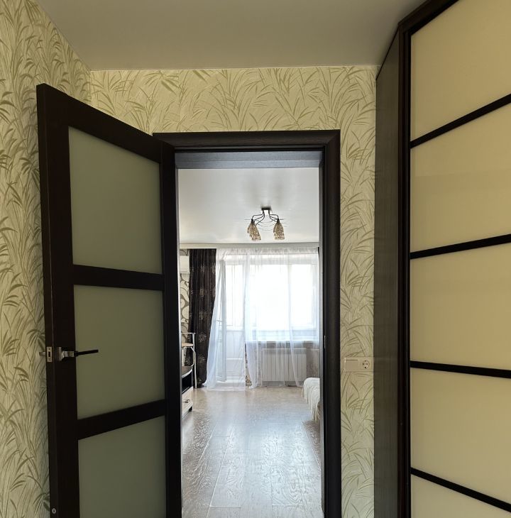 В квартире сделан качественный ремонт, на полу уложен ламинат (полы выровнены и не скрипят), стены ровные, оклеены нейтральными обоями классического стиля. Кухня студия продумана и удобна в использовании.