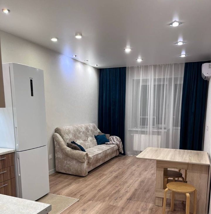 Квартира полностью готова к проживанию. В комнатах и на кухне есть необходимая мебель. Установлена современная техника: кондиционер, холодильник, телевизор и стиральная машина. Ванная комната оборудована душевой кабиной, что делает утренние сборы быстрыми и комфортными. Также имеется балкон для отдыха на свежем воздухе.
