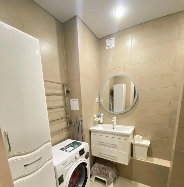Квартира с евроремонтом, полностью готова для комфортного проживания. В наличии вся необходимая техника: кондиционеры, холодильник, посудомоечная машина, стиральная машина и телевизор. На кухне предусмотрена вся необходимая мебель. Ванная комната оборудована душевой кабиной и гигиеническим душем.