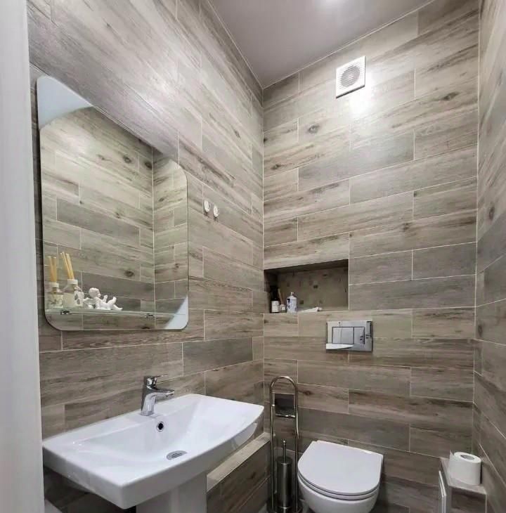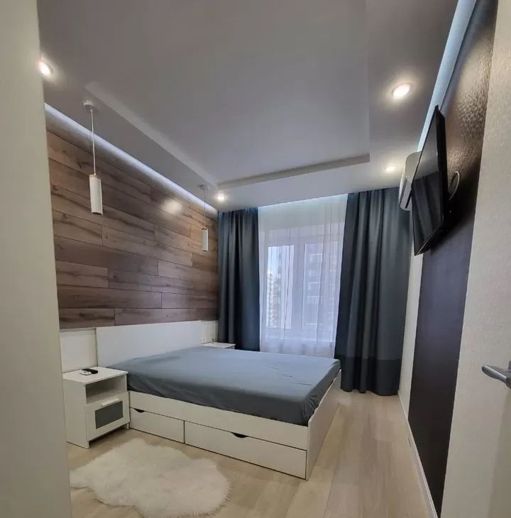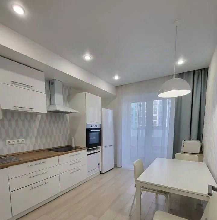 Квартира выполнена в стильном евроремонте, что придаёт ей современный и уютный вид. Просторная кухня площадью 12 квадратных метров оборудована всем необходимым — здесь есть холодильник и мебель. В комнате также имеется мебель, что позволяет сразу заселиться и наслаждаться комфортом. В ванной комнате установлена ванна, а санузел в квартире отдельный. Окна выходят во двор, поэтому в квартире всегда тихо и спокойно.