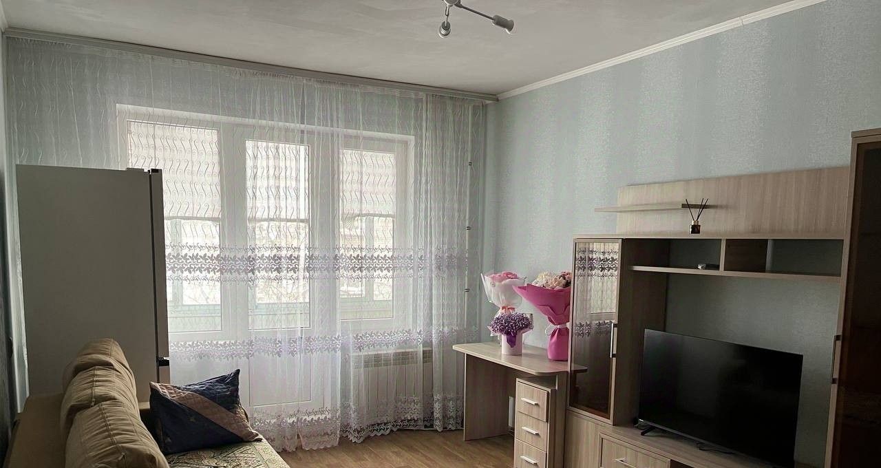 В квартире выполнен косметический ремонт, комнаты изолированы. В гостиной установлен телевизор и шкафы, что обеспечивает комфортное проживание.