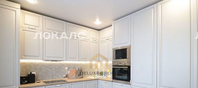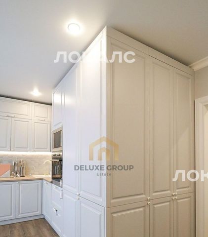 ПРО КВАРТИРУ: Стильный кухонный гарнитур, оснащён варочной панелью, вытяжкой, духовым шкафом, микроволновой печью, чайником холодильником, а также имеется весьма вместительная гардеробная комната;