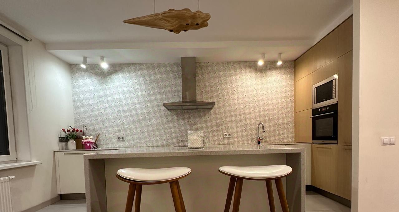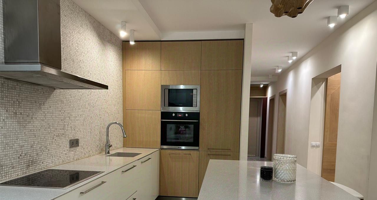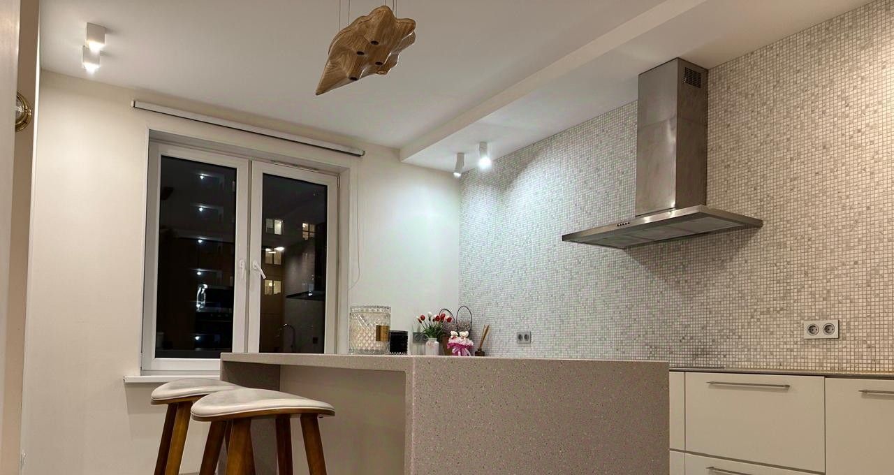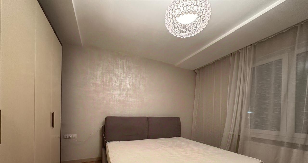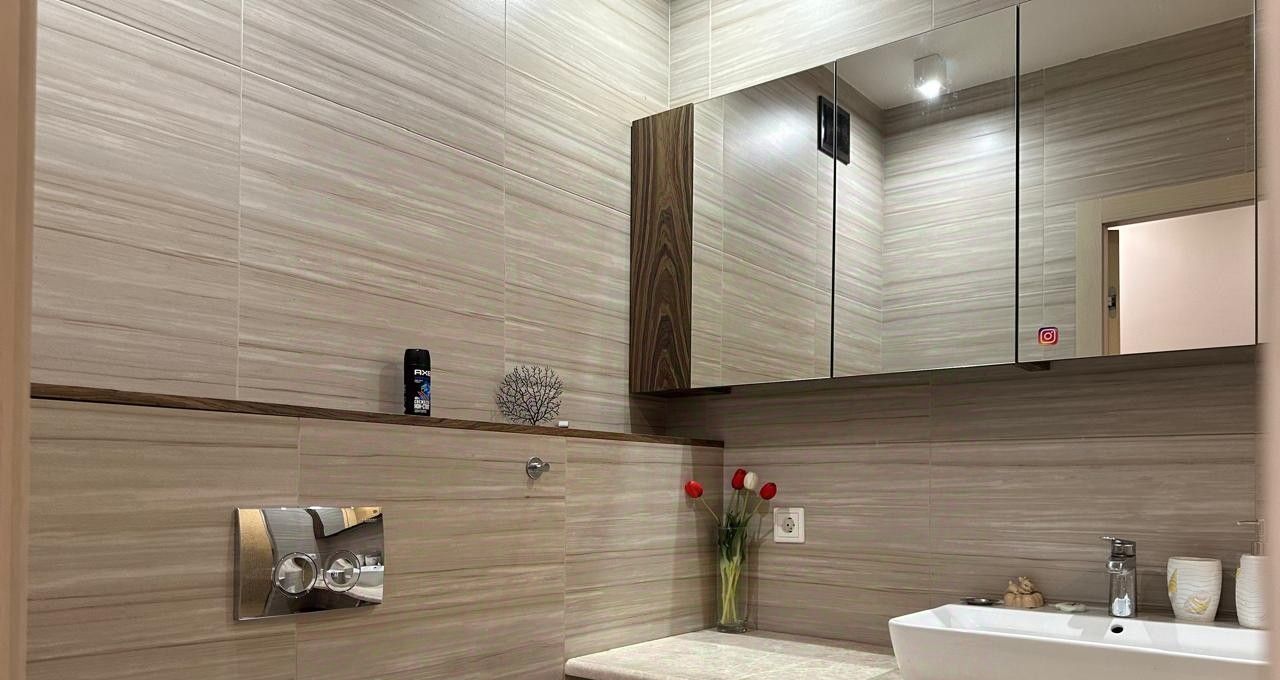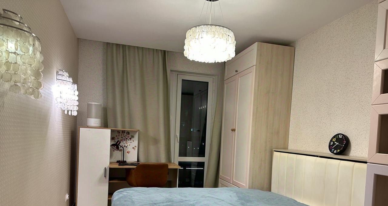 В квартире выполнен качественный ремонт: светлые стены и паркет на полу создают уютную атмосферу. Квартира полностью меблирована, есть вся необходимая техника для комфортного проживания. Просторная кухня с современным гарнитуром оборудована бытовой техникой: холодильник, плита, микроволновка. Удобная планировка включает раздельный санузел, что удобно для проживания нескольких человек.