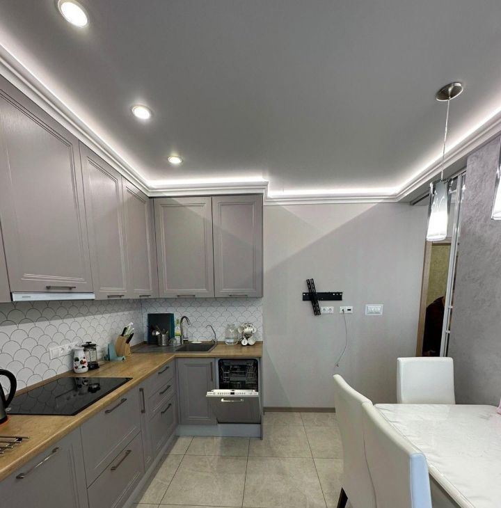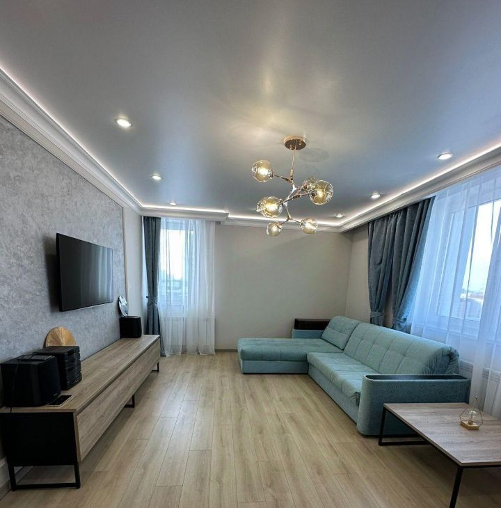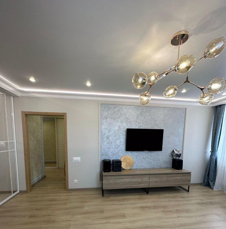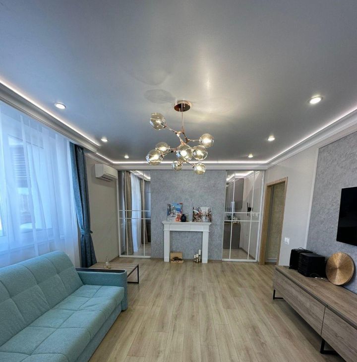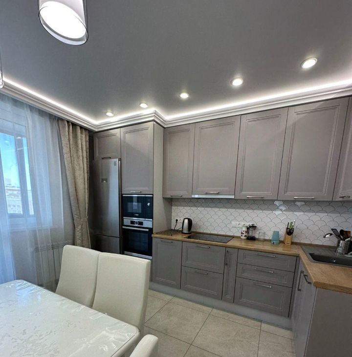 В квартире есть современный ремонт и вся необходимая мебель для комфортного проживания. Удобная планировка позволяет рационально использовать пространство. Кухня оборудована всей необходимой техникой, включая холодильник и стиральную машину. Санузел раздельный, оформлен в светлых тонах.