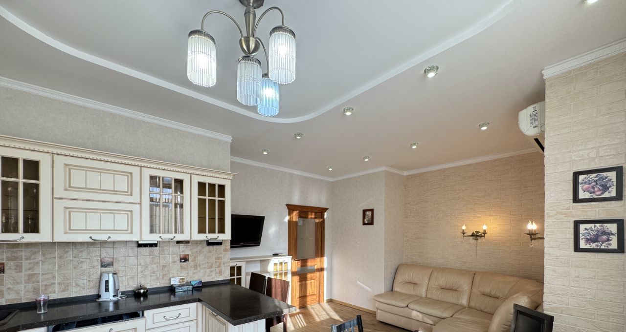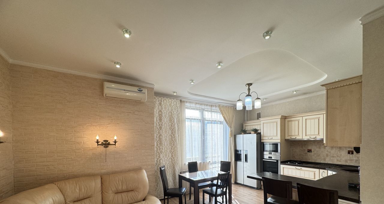 Квартира с дизайнерским ремонтом, комнаты изолированные. Кухня просторная, площадью 12 м², что позволяет комфортно готовить и принимать гостей. Из мебели в наличии спальные места.