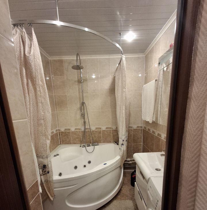 Квартира полностью меблирована: в комнате и на кухне есть вся необходимая мебель. На кухне установлена современная техника — холодильник, телевизор и стиральная машина. Ванная комната оборудована ванной, что позволит вам расслабиться после рабочего дня. Планировка продумана до мелочей для вашего комфорта.