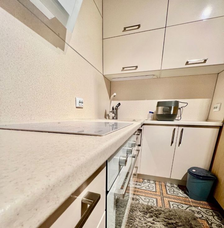 Квартира с евроремонтом и полностью готова к проживанию. В наличии вся необходимая техника: кондиционер, холодильник, телевизор и стиральная машина. Мебель есть как на кухне, так и в комнате, поэтому вам не придётся беспокоиться о дополнительных затратах. Санузел совмещённый, есть ванна, что добавляет комфорта.
