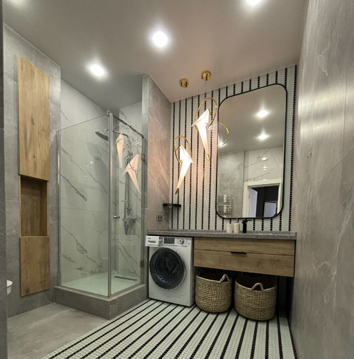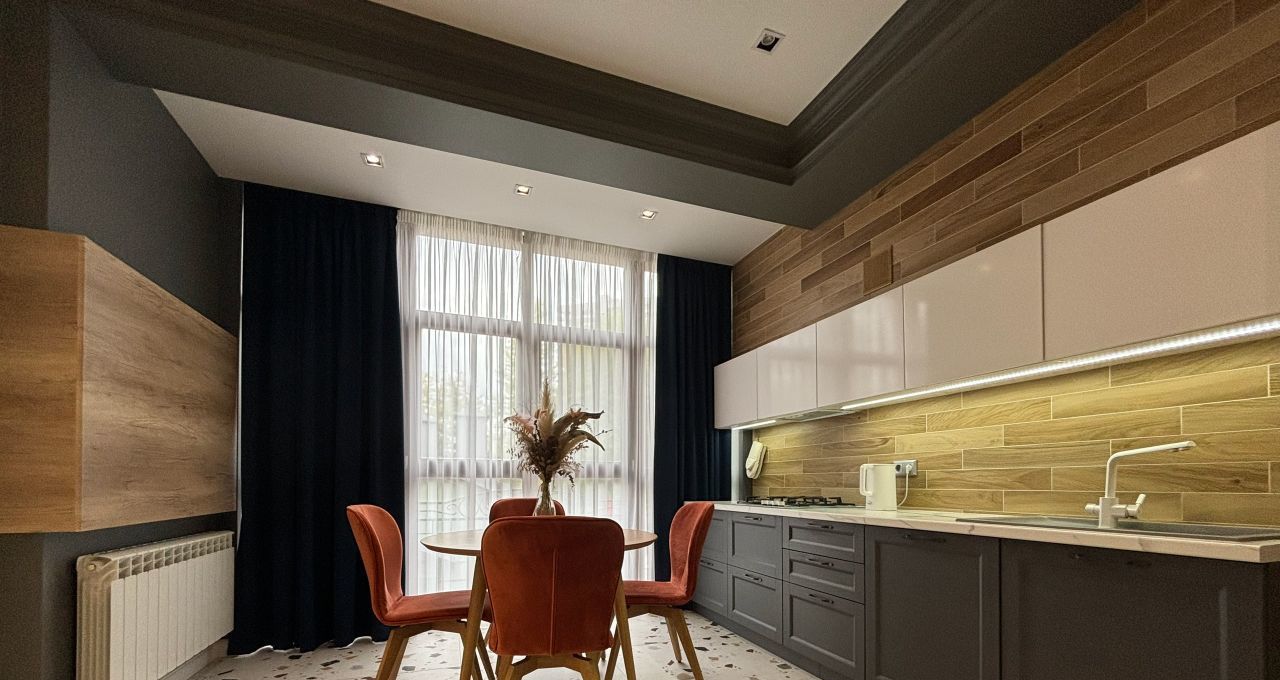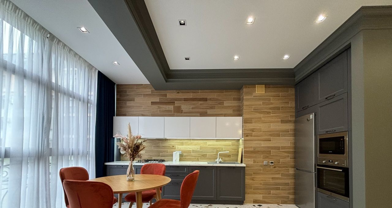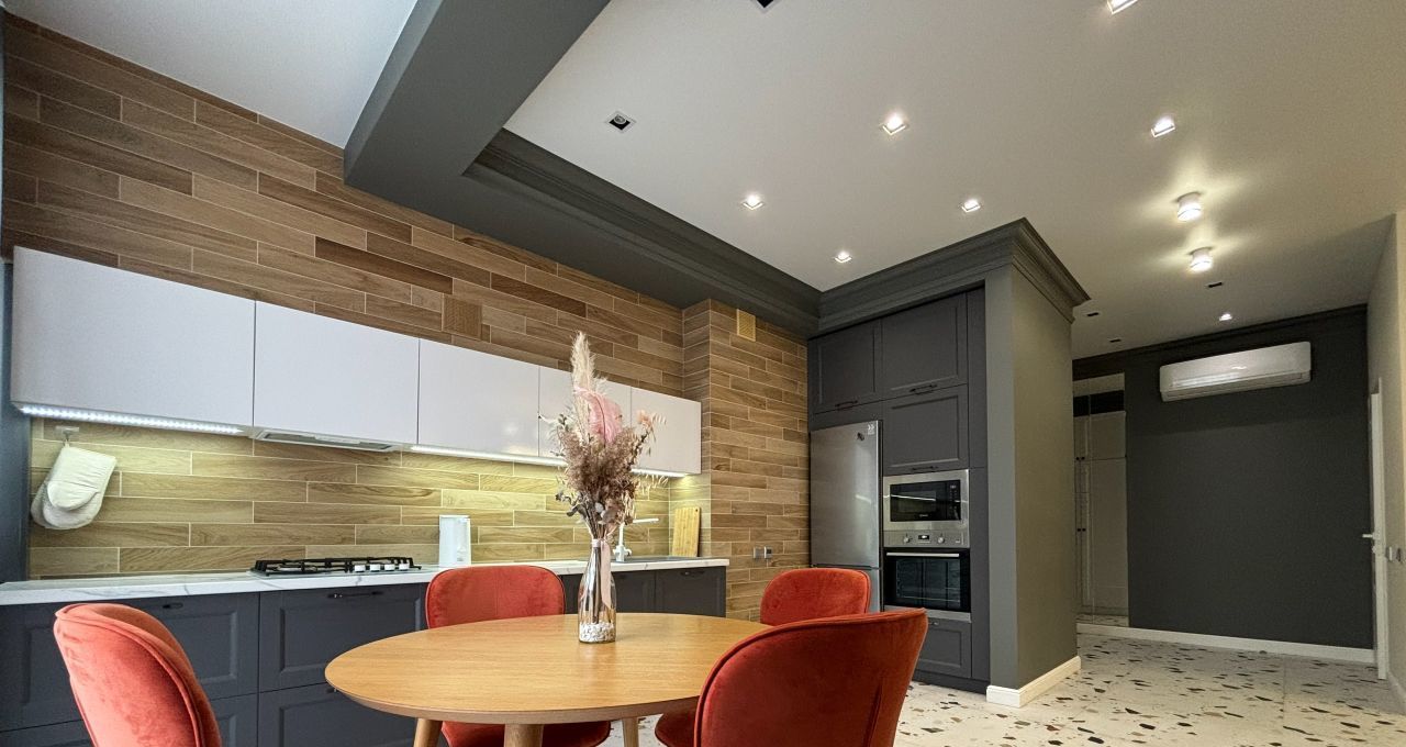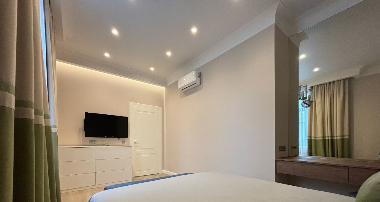 В квартире сделан современный ремонт, она полностью меблирована и готова к проживанию. Кухня оборудована всей необходимой техникой, включая холодильник и плиту. Просторная гостиная и спальня оформлены в светлых тонах, создавая атмосферу уюта и комфорта. Санузел раздельный и современно оборудован.