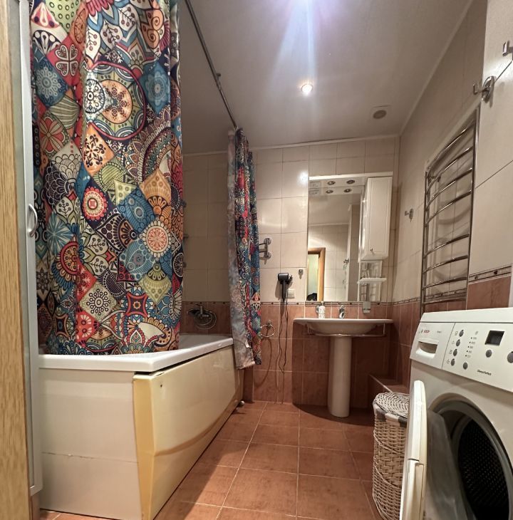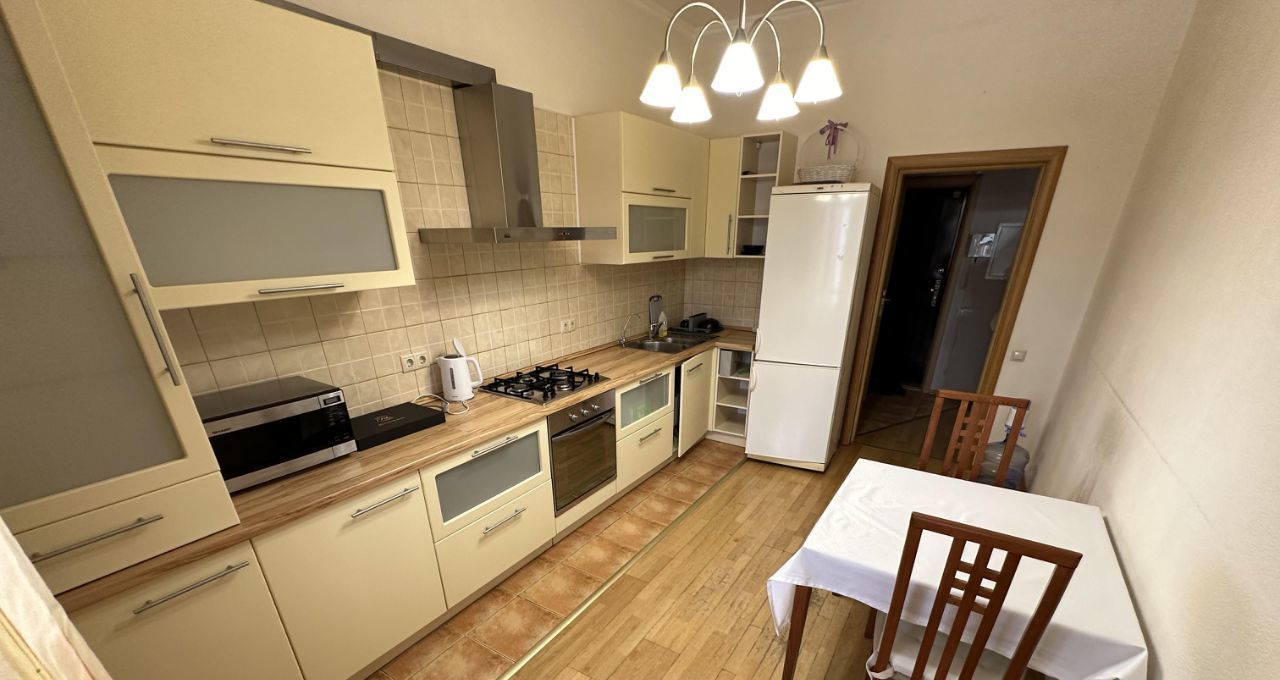 Сдается уютная двухкомнатная квартира площадью 70 кв. м на третьем этаже пятиэтажного кирпичного дома. Высота потолков — 3 метра, поэтому в квартире много света и пространства. Дом построен в 2007 году, находится в шаговой доступности от метро — всего 12 минут пешком.