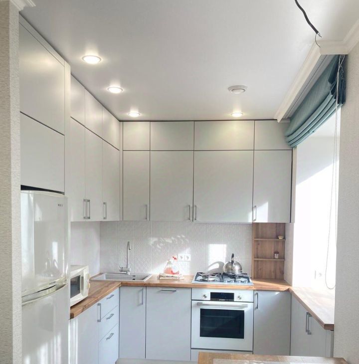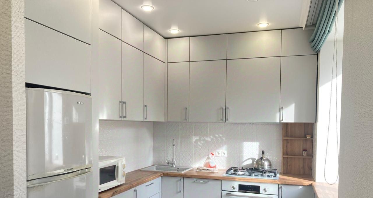 Просторная кухня (холодильник, плитка, СВЧ печь)