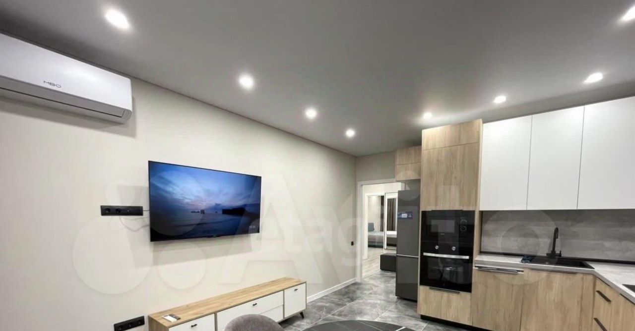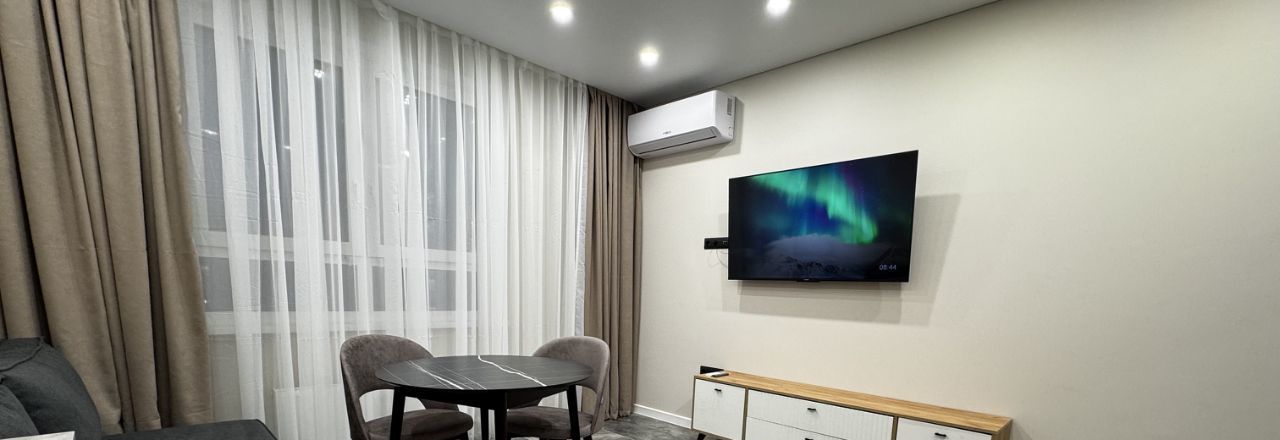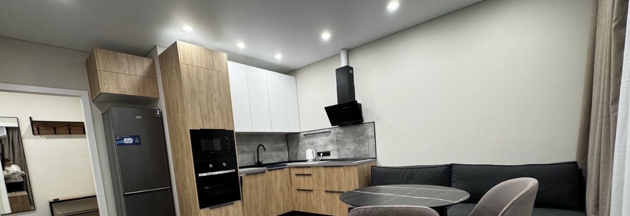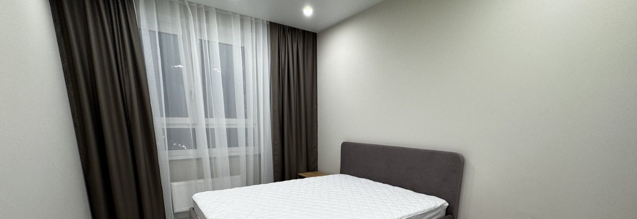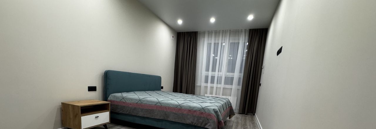 Первая сдача, в квартире две изолированные комнаты; и кухня гостиная 18 кв.м. Две двуспальные кровати 160*200 и 180*200; ортопедические матрасы Аскона. Квартира находится в современном ЖК, на берегу озера Кабан. Квартира укомплектована техникой.