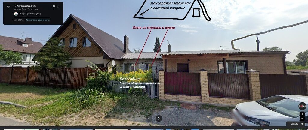 К квартире прилагается веранда 9 кв.м не входящая в общий метраж и два земельных участка, небольшой палисадник со стороны улицы и внутренняя территория с личным погребом который окружен фундаментом под будущий гараж, беседку или баню, на ваше усмотрение. Достаточно места для посадки деревьев, клумб, установки теплиц, растёт виноград. Так же есть возможность строительства второго мансардного этажа над квартирой. И самое интересное что есть большой подвал, потолки в нем выше двух метров с огромными фундаментными блоками как у пятиэтажек, помещения подвала поделены между жильцами, и каждое равно приблизительной площади квартиры, можно оборудовать мастерскую или складское помещение. В доме всего 4 квартиры, он планировался как детский сад но в перестройку проект свернулся, в итоге сделали 4 квартиры и раздали рабочим в 1996 году.