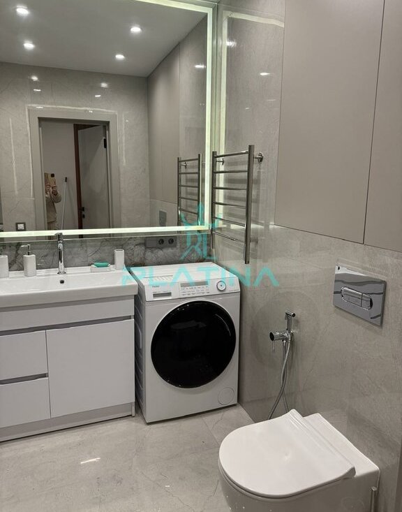 Санузел выполнен в стиле минимализма, оснащен душевой кабинкой и всеми необходимыми удобствами.
