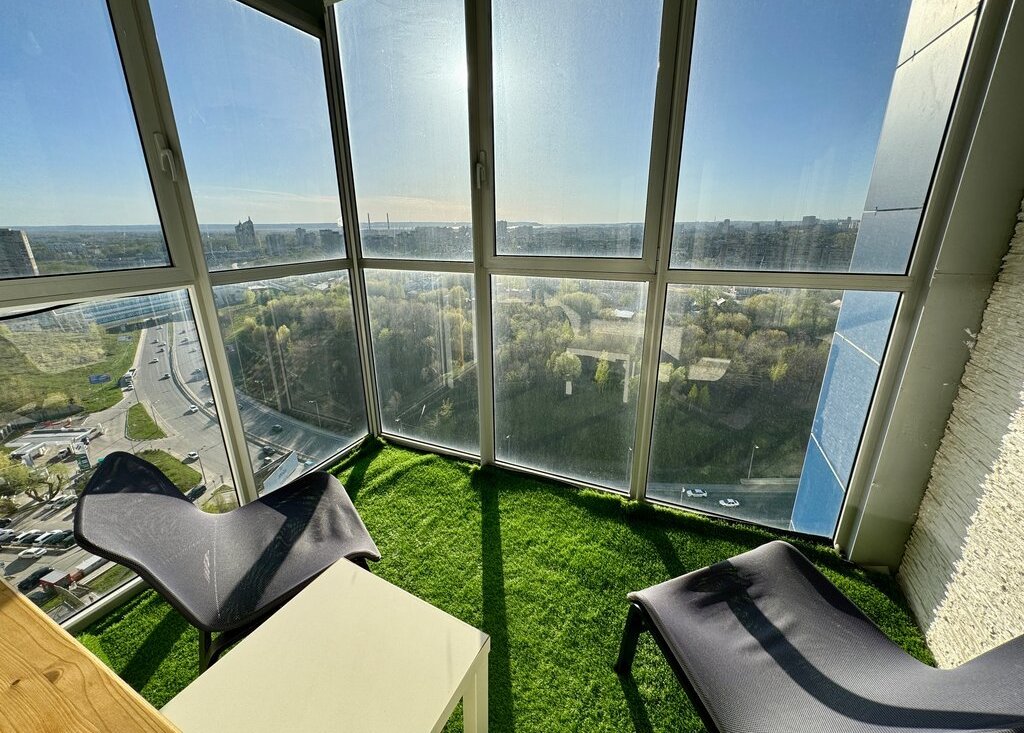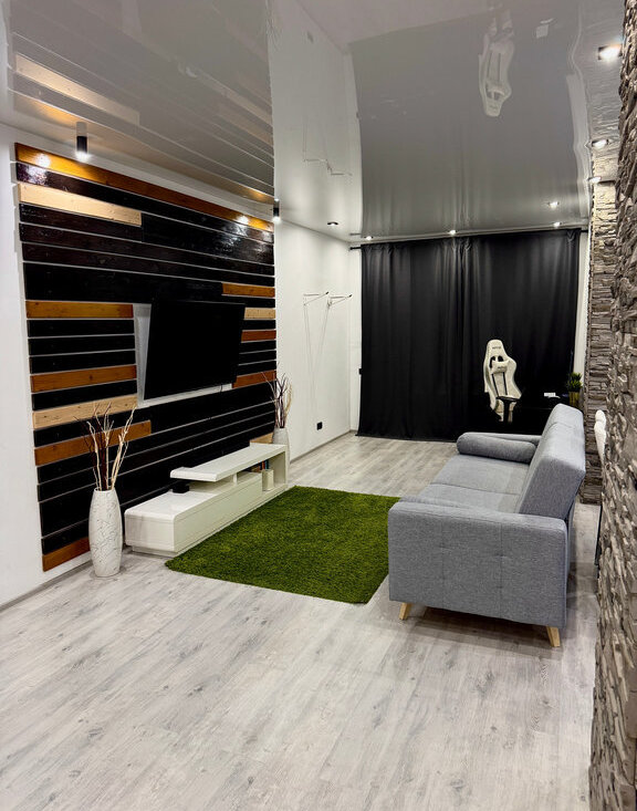 Просторная евродвушка (распашонка) с панорамным видом на город и Волгу. Дизайнeрcкий ремoнт. 2 балкона с новым остеклением и отделкой гипсовым камнем. Кондиционер в кухне-гостиной.