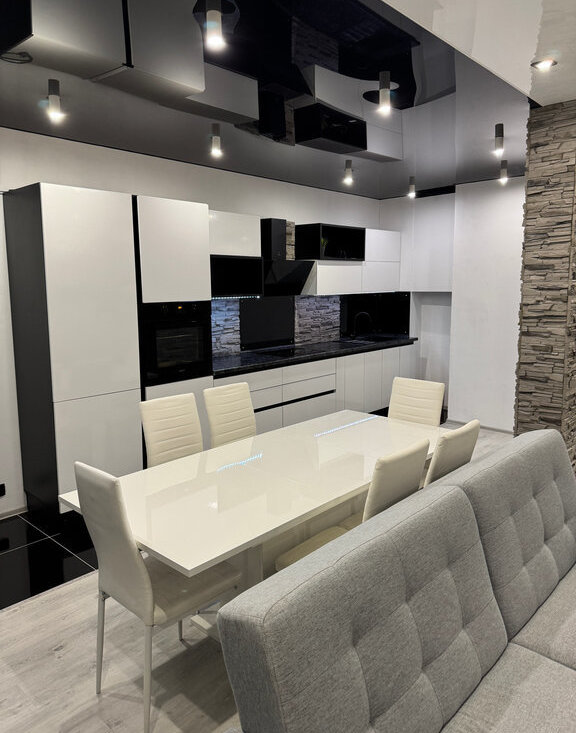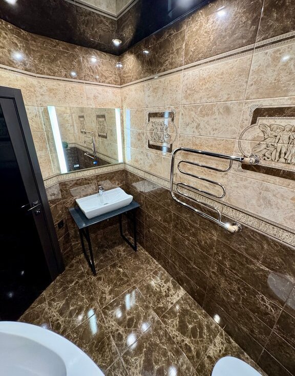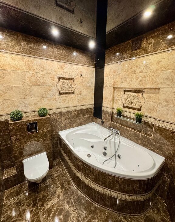 • Отделка натуральным камнем, керамогранит (ванна, кухня, прихожая), фурнитура Вlum.