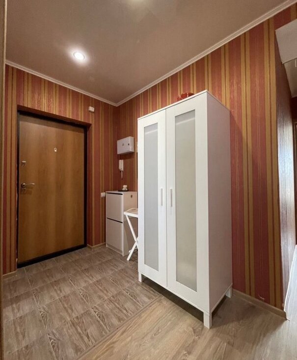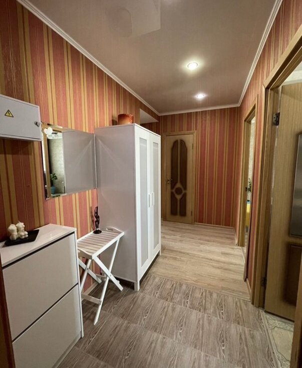 · Полностью меблирована: большая кровать, угловой диван, кресло, вместительный шкаф-купе, комод, шкаф и обувница в прихожей.
