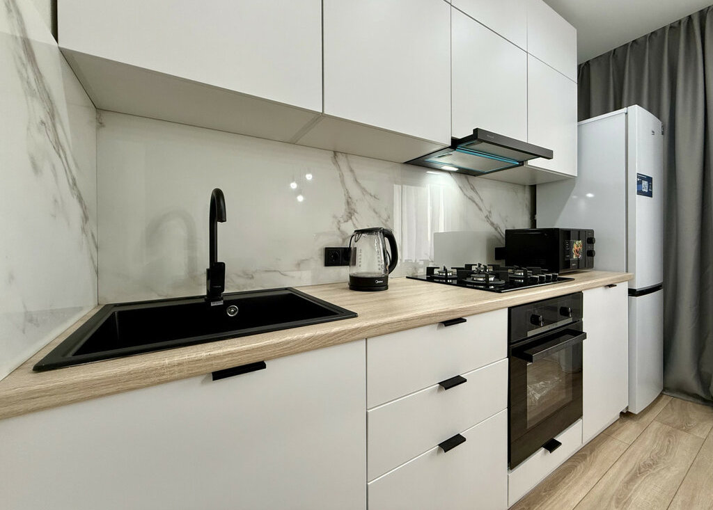 В квартире сделан ремонт с использованием современных материалов и бытовой техники лучших производителей. Полностью укомплектована всем необходимым, а именно:КондиционерТелевизорДиванДвуспальная кроватьСтиральная машинаДуховой шкафГазовая плитаХолодильник и др.