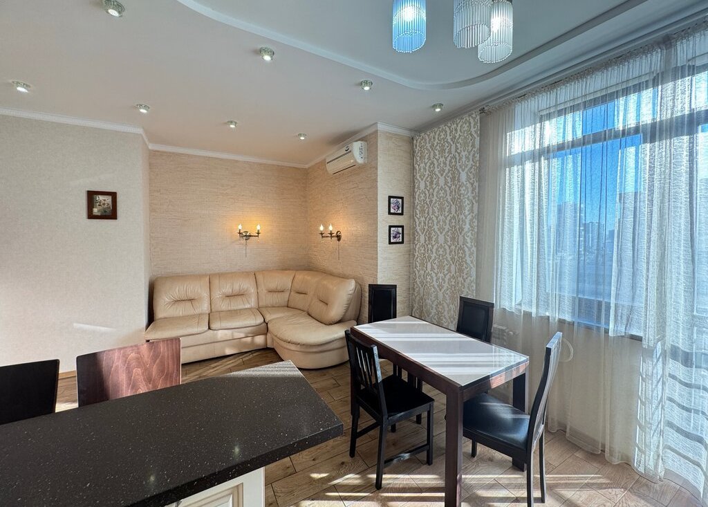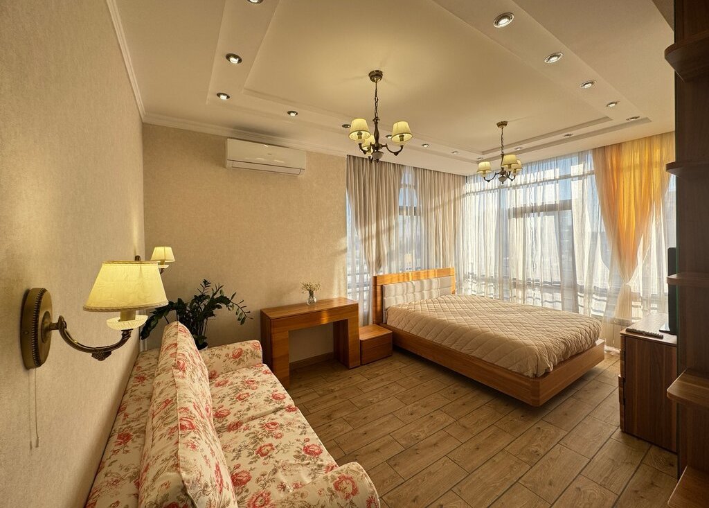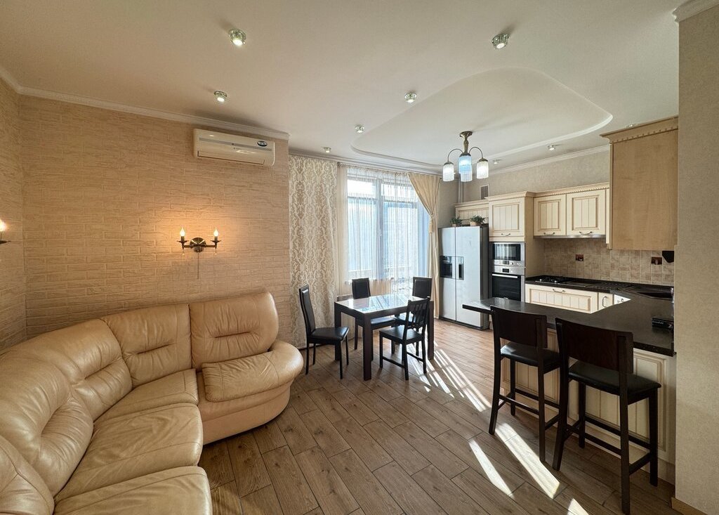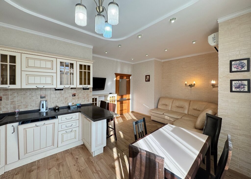Квартира с дизайнерским ремонтом, комнаты изолированные. Кухня просторная, площадью 12 м², что позволяет комфортно готовить и принимать гостей. Из мебели в наличии спальные места.