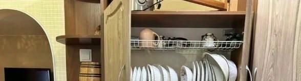 • Полная комплектация: Холодильник, стиральная машина, микроволновка, 2 телевизора и даже посуда.