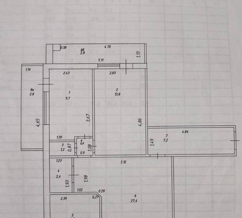 Общая площадь квартиры 77.1 м², гостиная -27.4 м., две спальни 9,1 и 13.8 м, кухня 9,5 м², санузел раздельный. ДВЕ ЗАСТЕКЛЕННЫЕ ЛОДЖИИ, ПОГРЕБ, КЛАДОВКА. Так же имеется вместительная ГАРДЕРОБНАЯ в прихожей.