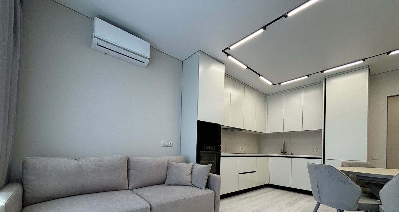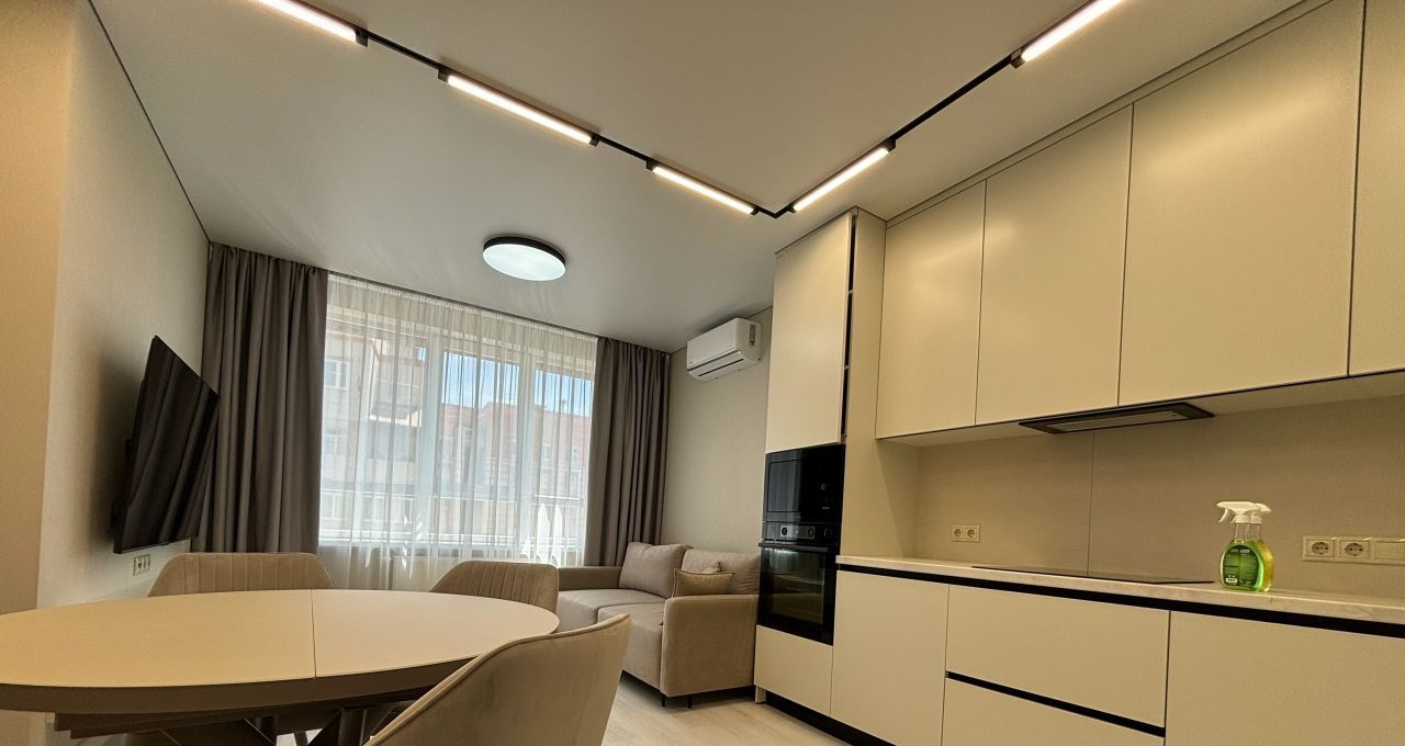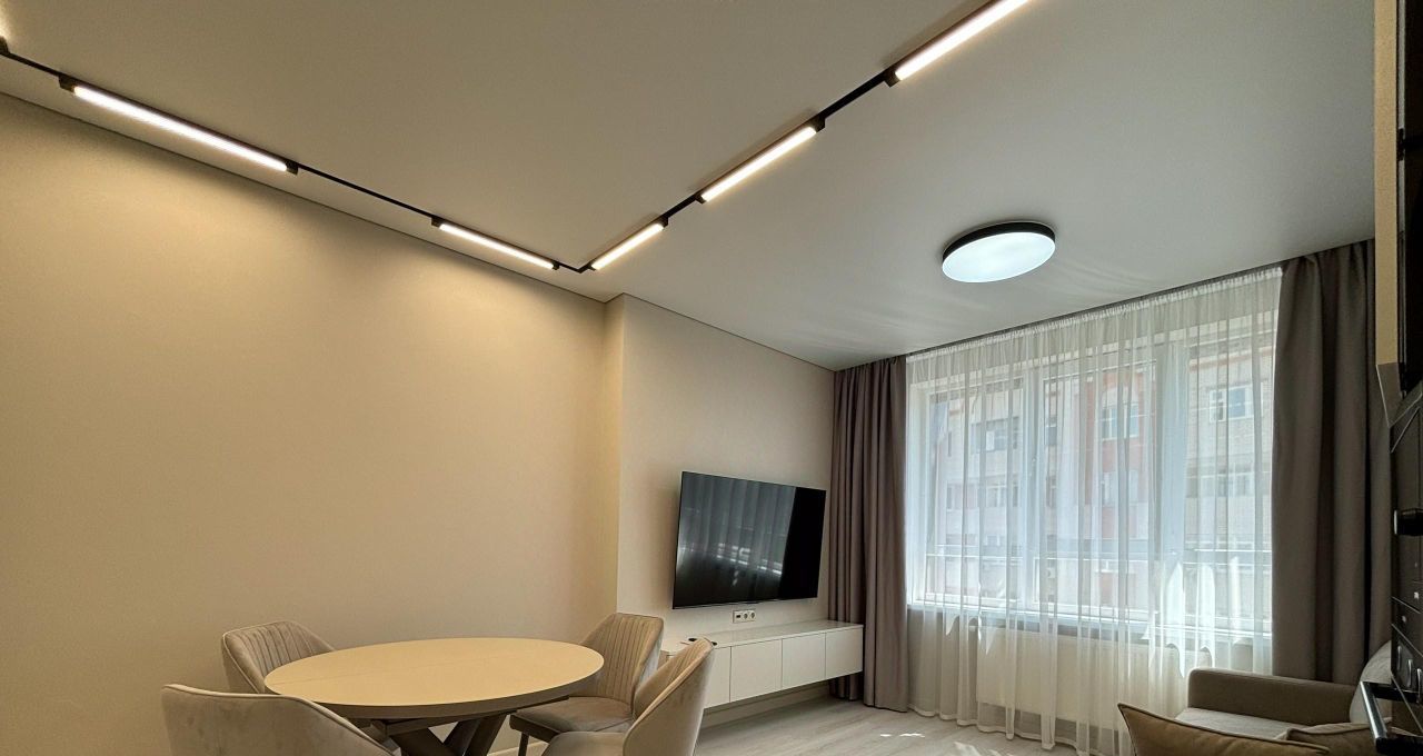 В квартире выполнен современный ремонт. Светлые комнаты, высокие потолки (2.7 м) создают ощущение простора и комфорта. В квартире есть вся необходимая мебель и техника для комфортного проживания, включая стиральную машину, холодильник и телевизор. Планировка удобная и функциональная. Санузел раздельный, что особенно удобно для большой семьи.