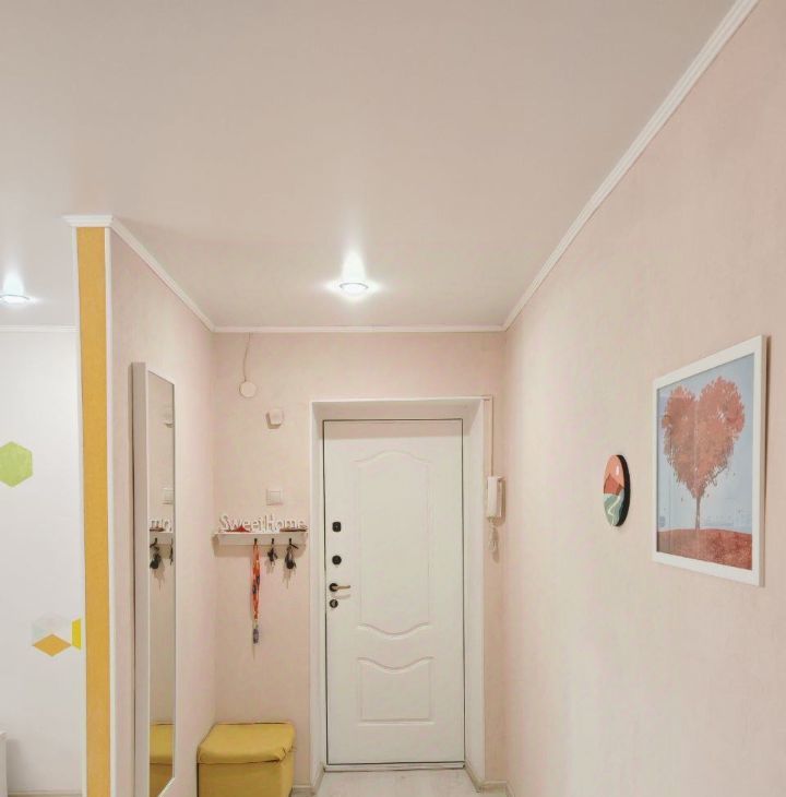 Просторная, с зеркалом в полный рост, пуфиком, ключницей. Домофон. Грязная зона вынесена в большой благоустроенный тамбур.