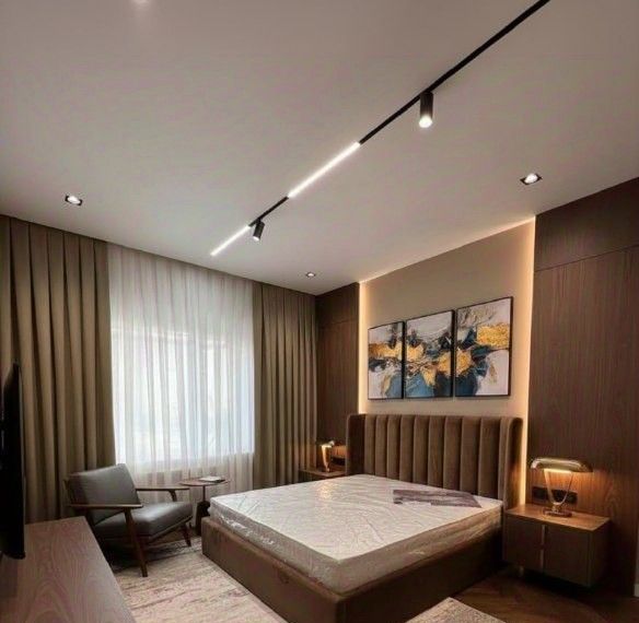 Квартира оформлена в дизайнерском стиле и полностью готова для комфортного проживания. В просторной кухне площадью 15 кв. м есть вся необходимая мебель и техника: холодильник, посудомоечная машина и кондиционер. В комнатах также есть мебель, а для вашего удобства в квартире установлены телевизор и стиральная машина. Ванная комната оборудована как ванной, так и душевой кабиной, что позволяет выбрать наиболее подходящий вариант для расслабления.