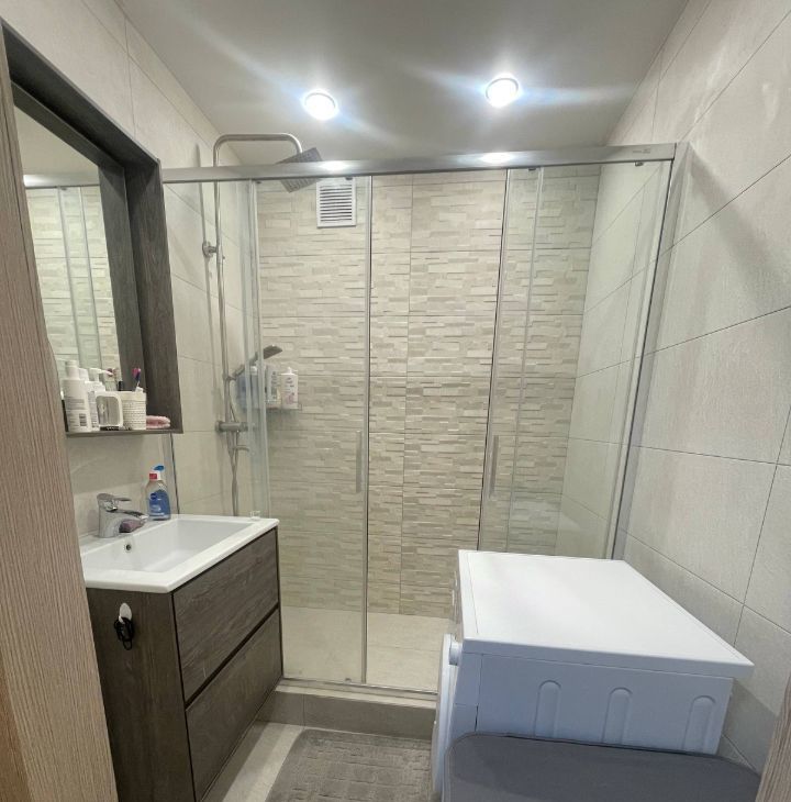 Квартира полностью готова к проживанию: сделан современный евроремонт, в наличии вся необходимая мебель и техника. На кухне есть мебель и холодильник, в комнате — мебель для комфортного отдыха. В ванной комнате установлена душевая кабина.