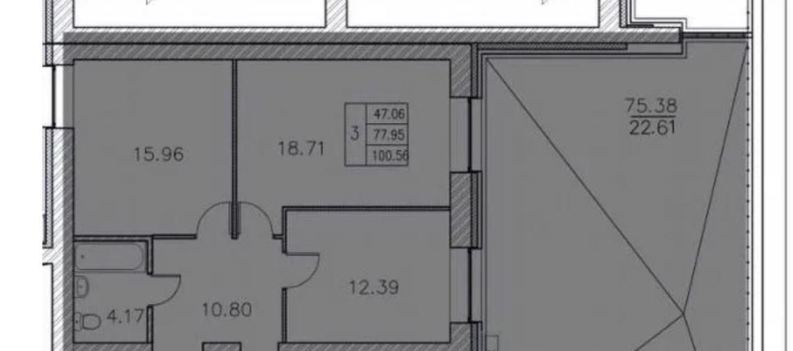 Общая площадь квартиры — 77,5 м² + терраса такой же площади, что редкость для городских квартир. Настоящее пространство для жизни и отдыха.